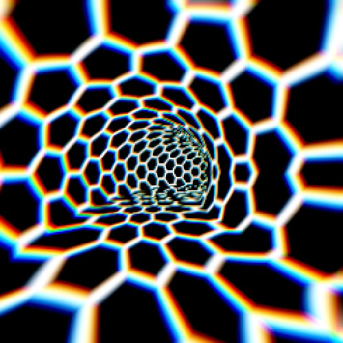 L’inspiration vient parfois aussi de la pure expérimentation mathématique et algorithmique. Je visualise parfois un peu moins le résultat, j’aime bien essayer et voir où ça va. Par exemple, si je sais faire un nœud torique dans un shader, je vais essayer, pourquoi pas, d’utiliser la forme du tore comme une courbe dans laquelle je vais faire bouger des objets, de manière à ce que mes objets s’entrecroisent. Mon inspiration, elle vient parfois de l’envie de combiner telle petite chose que je sais faire avec une autre, et de voir ce que ça donne. C’est ça que je trouve super avec le code créatif, c’est cette versatilité, cette potentialité incroyable qui provient de la combinaison de toutes petites techniques !