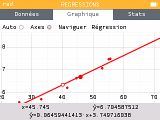 Que pensez-vous de la pertinence de la régression linéaire obtenue ? Quelle est l'équation associée à ce modèle ? On arrondira la valeur des coefficients à 3 décimales.